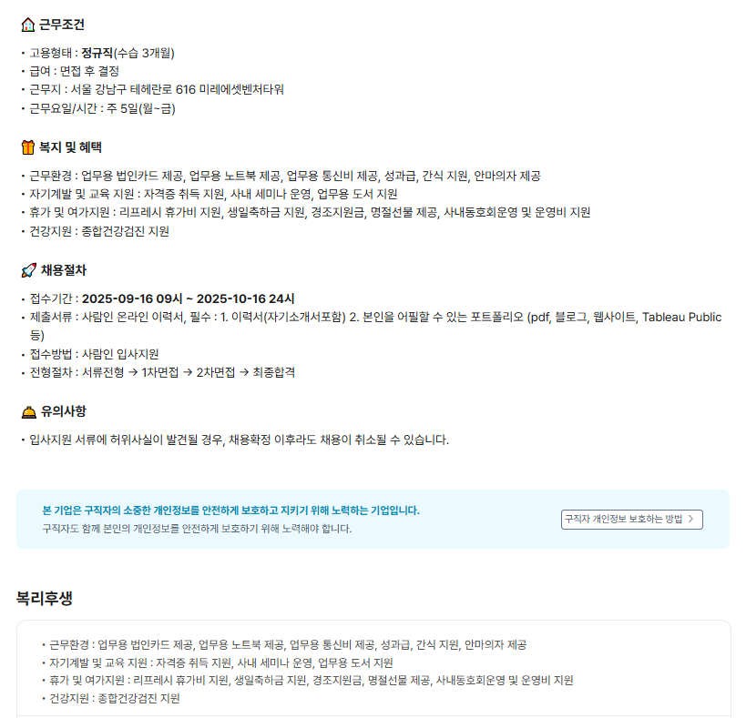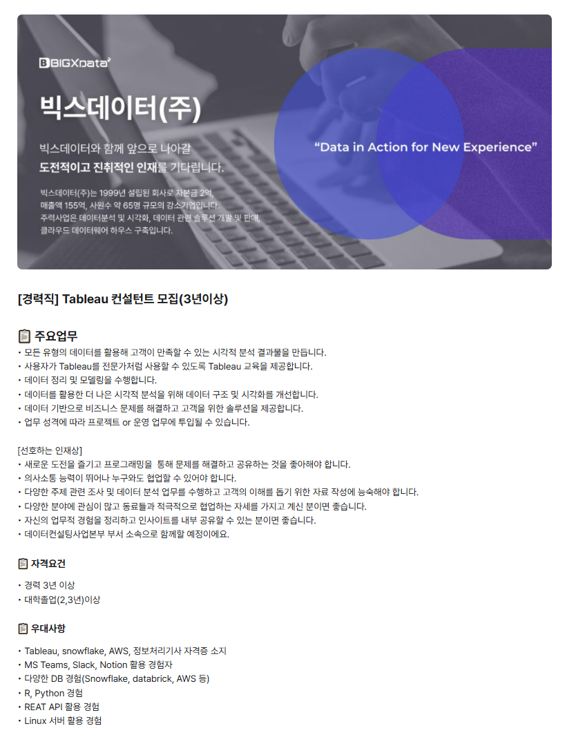 [경력직] Tableau 컨설턴트를 모십니다!! (3년이상)